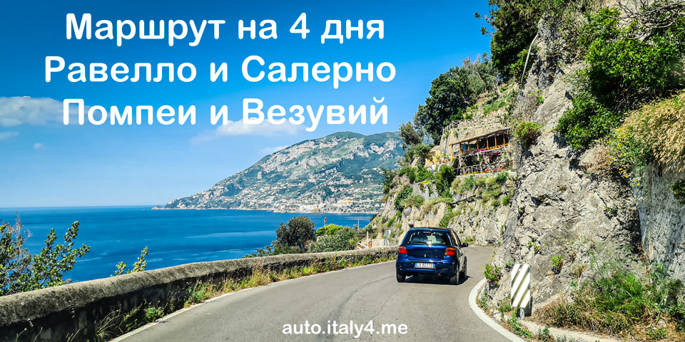 Маршрут рассчитан на 4 дня и включает посещение Помпеи, Везувия, Салерно и Равелло (Амальфитанское побережье), подойдёт для самостоятельных туристов, предпочитающих путешествовать по Италии на автомобиле. Вы можете последовать по нашим стопам точь-в-точь или дополнить поездку, опираясь на советы.